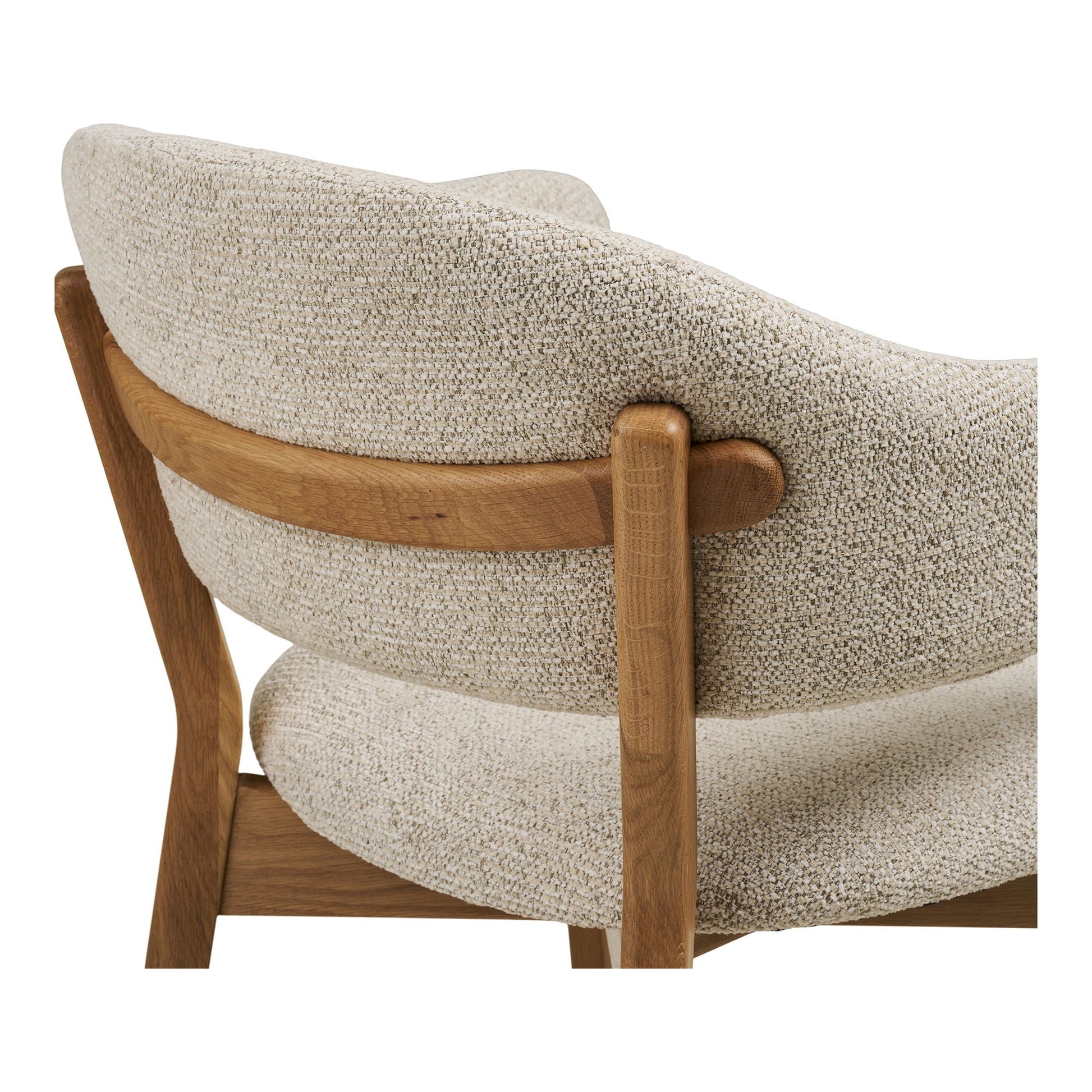 Chaise de salle à manger avec accoudoirs, bois de chêne avec assise en tissu, beige